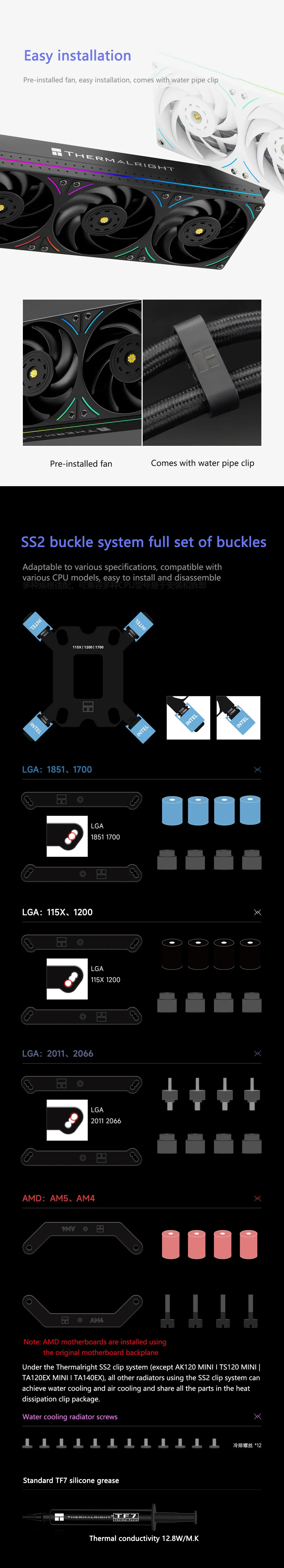 - رادياتير ألومنيوم 360mm مع 3 مراوح ARGB عالية الأداء بسرعة 2150RPM.