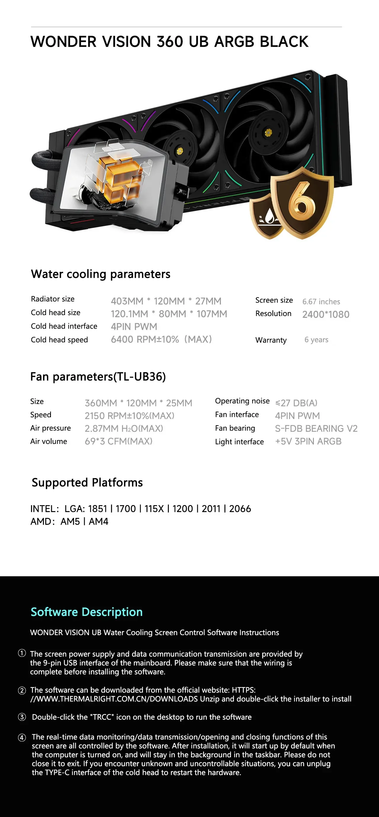 يتمتع المبرد المائي Wonder Vision 360 UB بالمواصفات الرهيبة التالية: