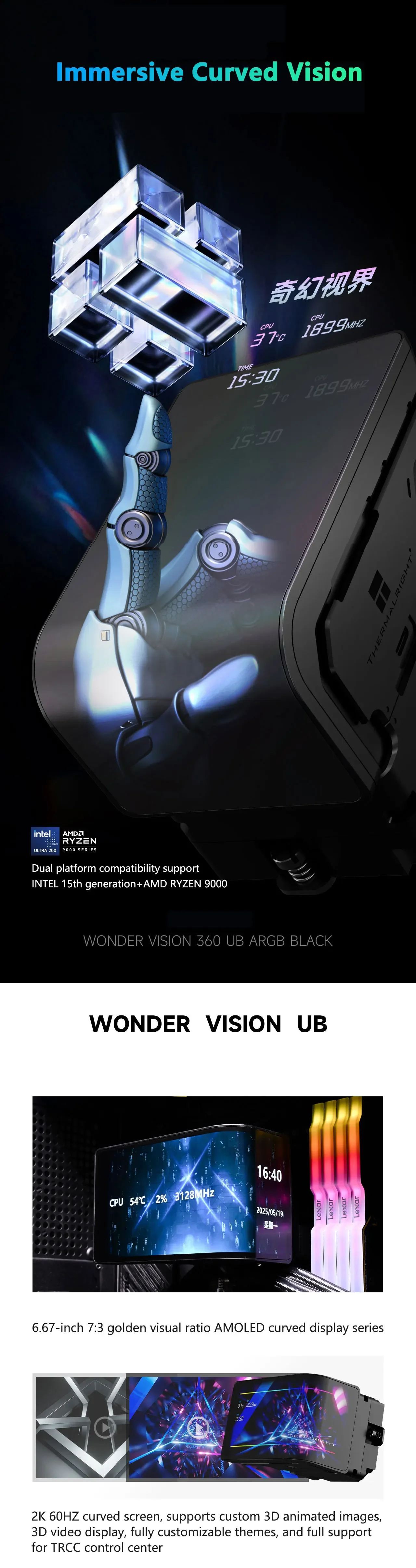مبرد Thermalright Wonder Vision 360 UB ليس مجرد تبريد مائي عادي، بل قطعة فنية تجمع بين الأداء والتقنية.