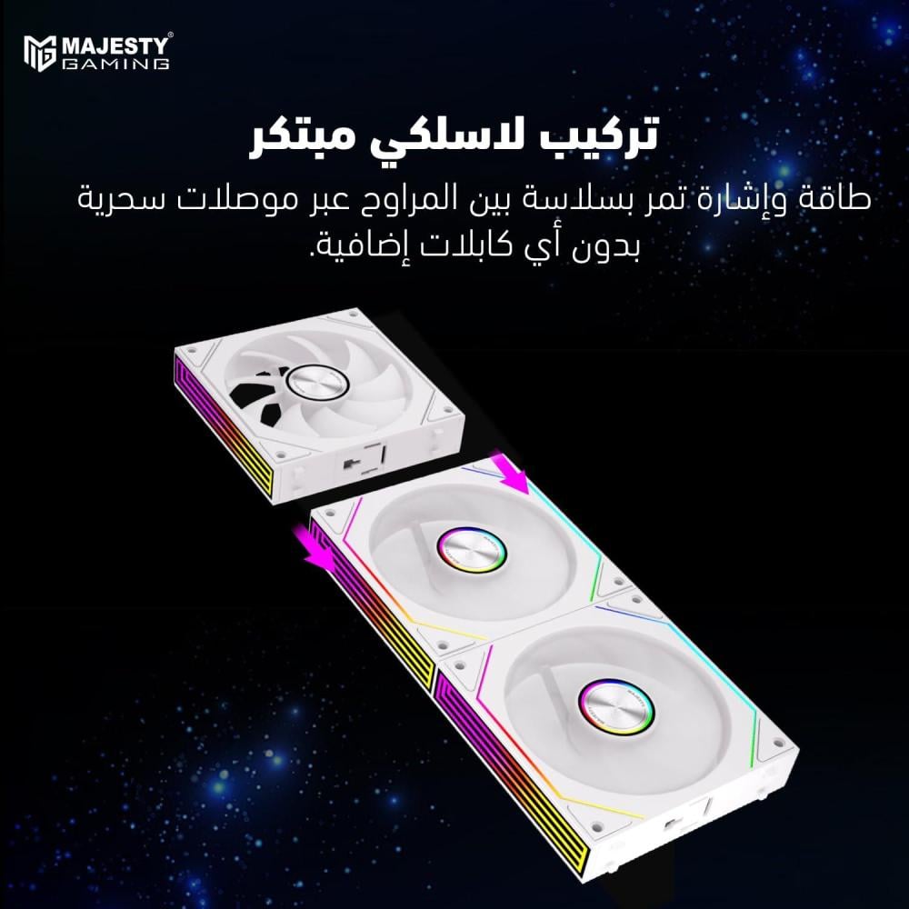 مروحة Majesty Prism Building Block – White تضيف لمسة عصرية لجهازك بفضل تصميمها المبتكر الذي يسمح بتركيب المراوح كقطعة واحدة أنيقة.